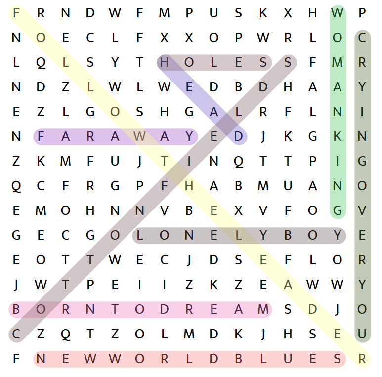 Read on for the solution to this week’s word search and the musical connection.